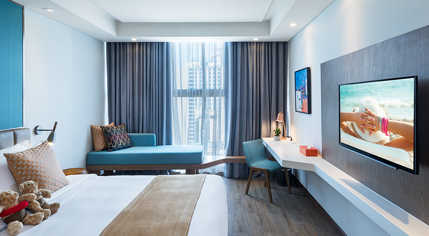 Citadines Bayfront Nha Trang được xây dựng theo chuẩn quốc tế, gồm 1 tầng hầm và 26 tầng nổi với hơn 300 căn hộ – phòng khách sạn mang phong cách thiết kế sang trọng, hiện đại theo với nhiều loại hình khác nhau từ phòng tiêu chuẩn đến các căn hộ nhỏ studio, căn hộ một, hai phòng ngủ và căn hộ penthouse. Các phòng/căn hộ được trang bị đầy đủ tiện nghi, không gian mở thoáng mát; và các tiện ích công cộng phong phú như trung tâm hội nghị, bể bơi, phòng tập gym, spa, nhà hàng, skybar,…